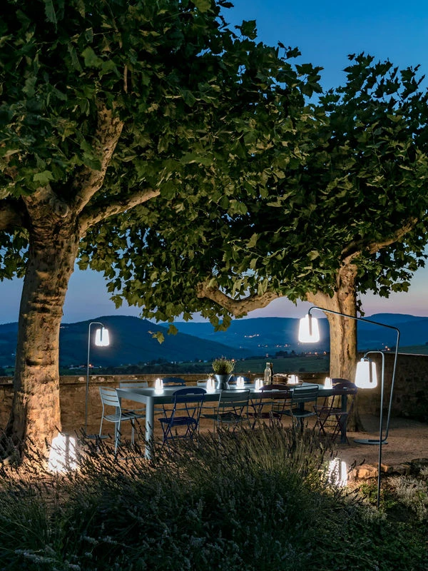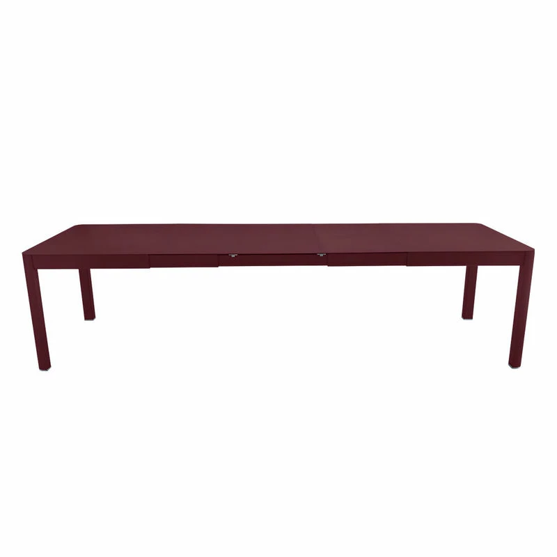 Ribambelle is an ample extending table in the XXL size. It is robust, practical and adjustable. Made completely from aluminium, it is happy both outdoors and inside. Able to accommodate up to 14 people, it will be the ideal partner to enjoy moments together among friends or family. The 3 central extension leafs are completely built into the structure of the table for perfect aesthetics. Thanks to a telescopic system on bearings, extending becomes simple and fluid. When they’re not being used, the extension leaves disappear discretely, cleverly stored in a storage box located under the top. With its timeless, clean design, Ribambelle fits into all styles and combines with any Fermob chairs. Combine the shapes and colours to give it all a dynamic, unique appeal! Made using a process and technology which meets the highest requirements in terms of quality, Fermob products are fully conceived in the spirit of Made in France and that is nowhere more evident than the location of the factory in Thoissey.