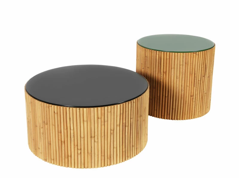 Sarah Lavoine’s Riviera collection features an old-fashioned Art Deco aesthetic, inspired by the French Riviera of the 1920s. This set consists of two coffee tables of different sizes and colours that form a graphic unit. These tables mix natural material and trendy colours. Evoking the 1960s and 1970s, rattan gives this piece of furniture a vintage look. This retro feel is counterbalanced by simple, modern lines and a palette of carefully chosen colours with a contemporary lacquered finish. The rattan’s vertical grooves have a serrated contemporary, feminine and graphic aspect to them. Riviera coffee tables offer a subtle blend of elegance and relaxation that fulfils our need for something different mixed with nostalgia. These coffee tables are handmade in Spain.