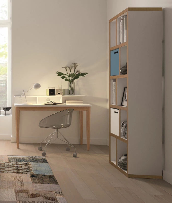 The distinctive design of the Rotterdam bookcase, with an exceptional geometric arrangement, is planned to blend in any living area or home office. This Tresle-propose piece can store much more than just books, and is available in neutral finishings such as pure white or oak. Combined with the Rotterdam Box, a small compartment that fits like a glove into the bookcase, it is now possible to personalise the shelf and bring a splash of bright colour, in an exquisite contrast with the subtle tRectangulars of Rotterdam.