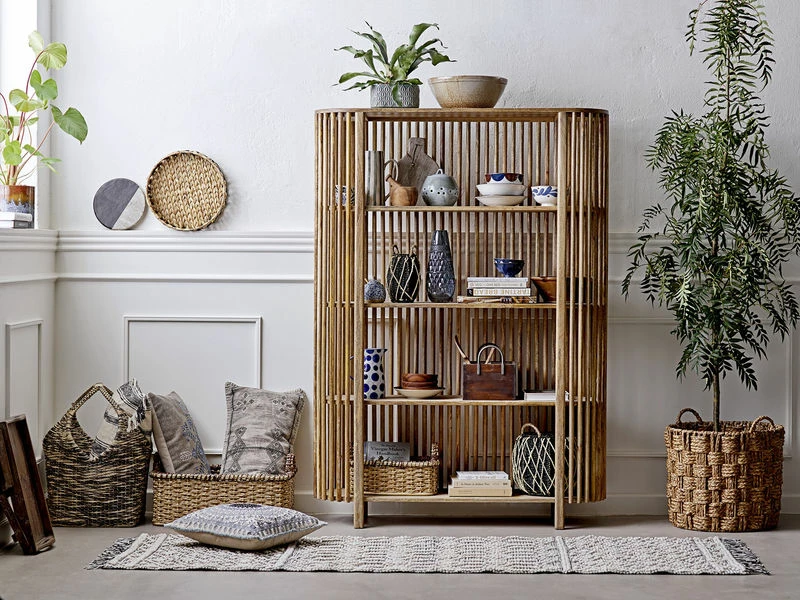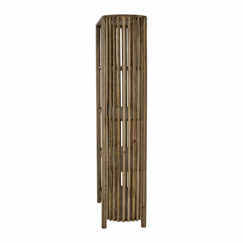 Authentic material and natural simplicity… Like a trellis, this bookcase is composed of a stunning openwork dressing made from mango wood. The multiple vertical sections gently surround the four rounded shelves, partially concealing their contents. Placed in the middle of a room, this bookcase can be used as a partition to separate two spaces.