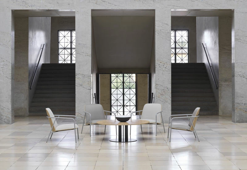 The central leg of the Scala table consists of four pillars of rectangular cross-section arranged symmetrically, forming an open column. The shape of the leg changes, depending on the angle of view. This sturdy base is made of black steel. It’s associated with a top available in a multitude of versions to suit your decor: from the sensual warmth of oak to a selection of refined Italian marbles or steel with an industrial, modern style. The wide variety of sizes and shapes allows the Scala table to meet multiple needs, in private homes as well as public spaces: small coffee table, dining room table, meeting table…