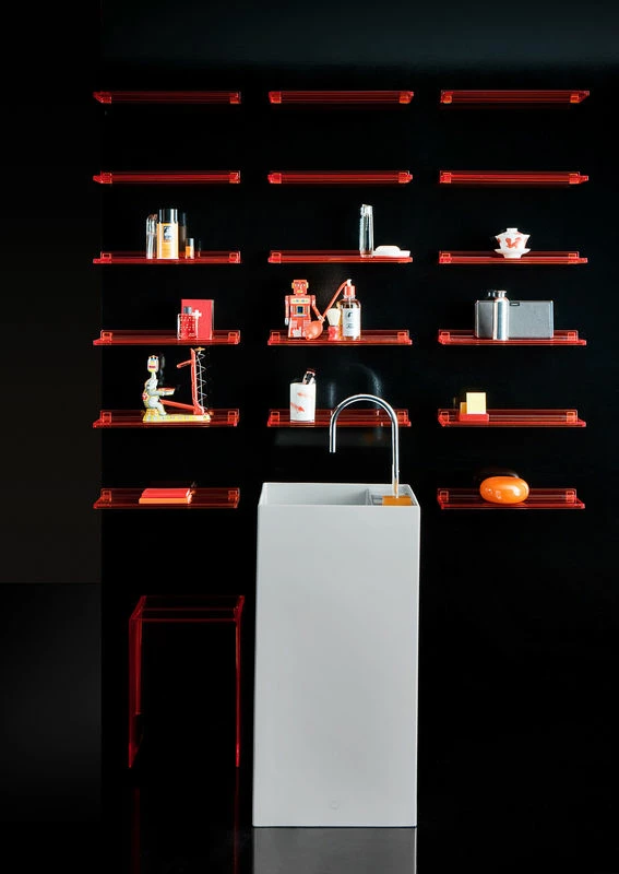 Kartell and LAUFEN are together launching an integrated and complete bathroom project. A codesigned project nurtured by the intense dialogue between the enlightened customer on the one hand the awardwinning designers Ludovica+Roberto Palomba on the other, who have earned themselves the merit of having reinvented the concept of the bathroom. The vitreous transparency of latest generation polycarbonate and the sheer edges of the totemic freestanding washbasins attract those that love minimal, lunar, rarefied white environments.