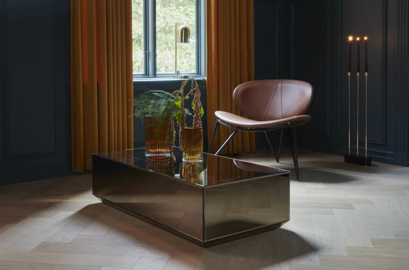 Simultaneously luxurious and minimalistic, this elegant coffee table is sure to add a refined touch to your décor. This large rectangle has been made entirely from glass with a mirror finish, which reflects its surroundings: a chameleon piece, veiled in mystery! Speculum plunges us into the world of magic and the attraction of reflective materials: the world is projected within, reflected, recreated… It’s a living picture that transforms and evolves according to what’s around it. The bevelled corners of the base catch the light and reflect it to give Speculum a spectacular shine.