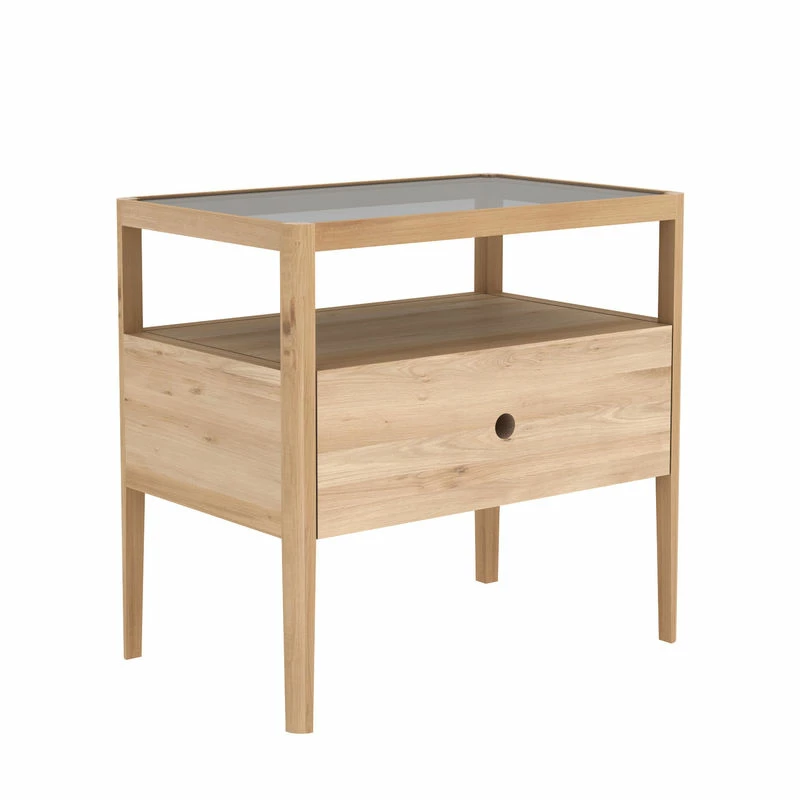 Spindle Bedside Table – / Solid Oak & Glass – 1 Drawer – Ethnicraft