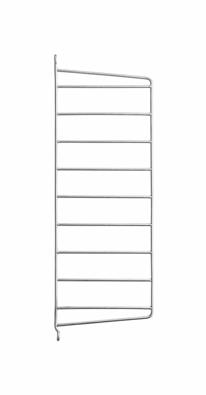 An icon of Scandinavian design for our gardens and terraces! Designed in 1949, the famous modular String shelf is now available in a galvanised steel version suitable for outdoor use. Perfectly weatherproof, it does not rust. Its raw, industrial look is also perfect for creating a loft decor inside. The shelves are made of aluzinc, a steel coated with zinc-aluminium, which is ultra-resistant to mould and corrosion. The lateral uprights are made of galvanised steel. The perforated shelves allow water to drain away. These shelves are perfect for holding flower pots and creating a trendy nature area. Aromatic plants, colourful flowers, a cactus collection: let your imagination run wild to dress this refined structure as you wish. String shelving is also perfect for storing gardening tools, watering cans, baskets and lanterns … The String shelf system is totally modular. All elements (uprights, shelves) are sold separately and very easily assembled. The shelves fit easily into the side pillars without the use of tools. The shelves are adjustable in height. To make your String composition, just buy at least 2 side uprights. You can choose between floor (ground) and wall uprights. If you want to expand your shelf, you can add a third upright or more. Contains a single wall upright Suitable for String shelves with a depth of 20 cm.
