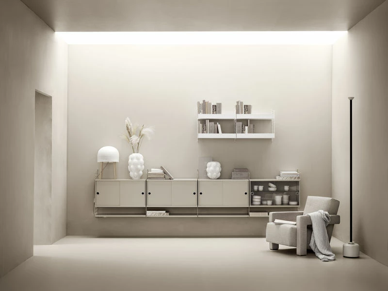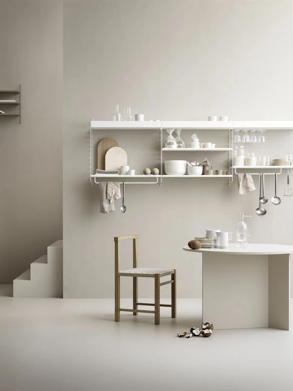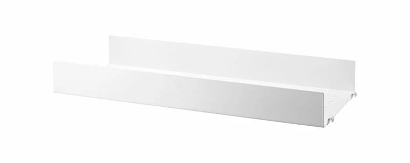 A Scandinavian design icon! The String shelving system was designed in 1949 by the famous Swedish designer Nils Strinning. The String shelf is still manufactured in Sweden according to high quality standards. Its design has not changed since 1949. Totally flexible, this shelving system gives you complete freedom to customise the look, dimensions and functions of your furniture. All elements (uprights, shelves, compartments) are sold separately and very easily assembled. The shelves and compartments fit easily into the side pillars without the use of tools. Shelves and compartments are adjustable in height. To make your String composition, just buy at least 2 side uprights. You can choose between floor- (which stand on the floor) or wall-mounted uprights. If you want to expand your shelving, you can add a third upright or more. This perforated metal shelf has a large edge (H 7 cm). The length of this shelf is: L 58 cm and depth 20 cm. This shelf is suitable for String System uprights 20 cm deep.