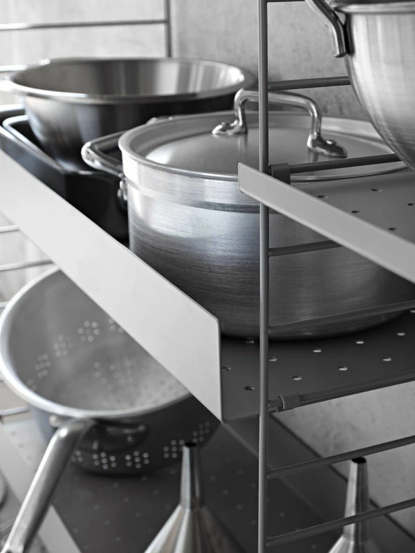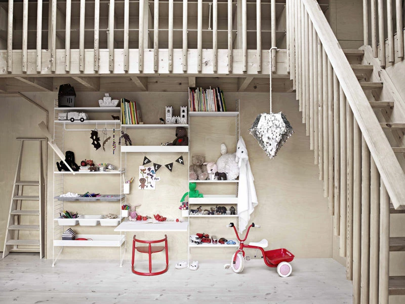 A Scandinavian design icon! The String shelving system was designed in 1949 by the famous Swedish designer Nils Strinning. Totally flexible, this shelving system gives you complete freedom to customise the look, dimensions and functions of your bookcase. All elements (uprights, shelves, boxes) are sold separately and very easily assembled. You choose the number of uprights, the number and length of shelves, you can add boxes … The String shelf is still made in Sweden with close attention to quality. Its design has not changed since 1949. As for building your String shelving, nothing could be easier ! The shelves and boxes are freely arranged in the side uprights made of steel wire. You can choose between several types of shelves : wooden or metal shelf (L 58 cm or L 78 cm), magazine holder (L 78 cm) or shelf with 3 integrated bins (L 78 cm) … You can also choose a box with sliding doors or drawers. The shelves and boxes fit easily into the steel side posts without tools. They can be freely arranged at the desired height. They assemble and disassemble very easily : so you can change their position in the blink of an eye. The lateral steel uprights attach to the wall. To make your String composition, just buy 2 side uprights at least. If you want to expand your bookcase, you can add a third mounting or more. This perforated metal shelf has a small rim (H 2 cm). The length of this shelf is: L 78 cm.