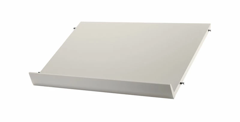 A Scandinavian design icon! The String shelving system was designed in 1949 by the famous Swedish designer Nils Strinning. The String shelf is still manufactured in Sweden according to high quality standards. Its design has not changed since 1949. Totally flexible, this shelving system gives you complete freedom to customise the look, dimensions and functions of your furniture. All elements (uprights, shelves, compartments) are sold separately and very easily assembled. The shelves and compartments fit easily into the side pillars without the use of tools. Shelves and compartments are adjustable in height. To make your String composition, just buy at least 2 side uprights. You can choose between floor- (which stand on the floor) or wall-mounted uprights. If you want to expand your shelving, you can add a third upright or more. This lacquered MDF shelf is sloping and has a rim. It can be used as a magazine rack or shoe rack. Its edge can hold magazines, books and shoes. It’s 58 cm long.