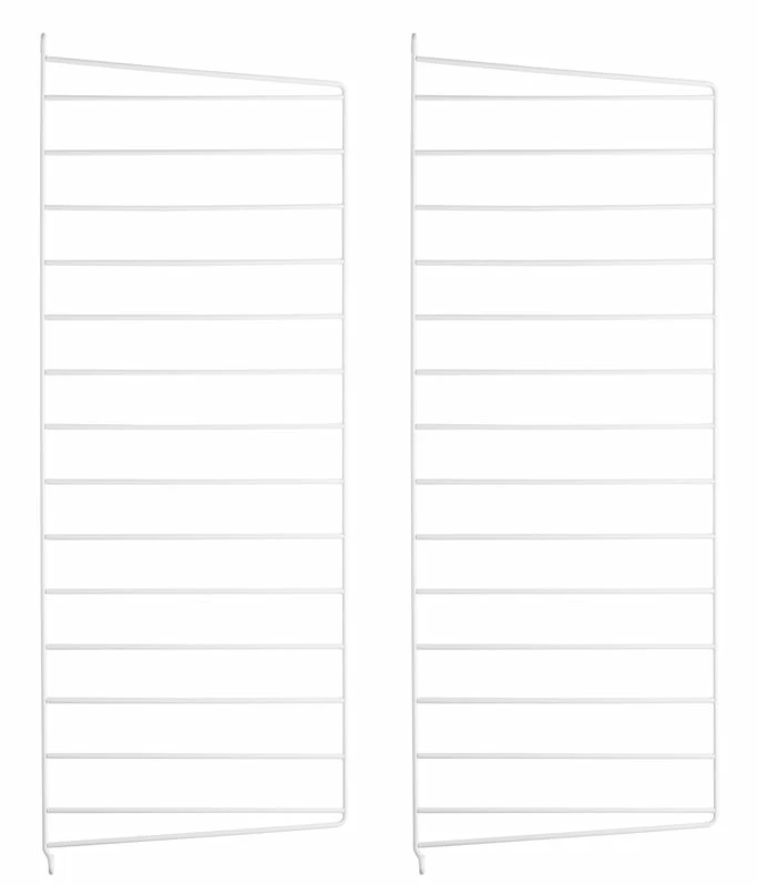 An icon of Scandinavian design! The String shelving system was designed in 1949 by the famous Swedish interior designer Nils Strinning. Fully modular, this shelving system gives you complete freedom to customise the look, dimensions and functions of your bookcase. All the elements (uprights, shelves, boxes…) are sold separately and very easy to assemble. You choose the number of uprights, the number and length of the shelves, you can add boxes … String shelving is still made in Sweden with great attention to quality. Its design has remained unchanged since 1949. To build your String shelving, nothing could be simpler! Shelves and boxes can be freely arranged in the steel wire lateral uprights. You can choose between several types of shelves: simple shelf (L 58 cm or L 78 cm), magazine holder shelf (L 78 cm) or shelf with 3 built-in boxes (L 78 cm). You can also choose a crate with sliding doors or drawers. The shelves and containers fit easily into the steel lateral uprights without the use of tools. They can be freely arranged at the desired height. They’re very easy to assemble and disassemble: so you can change them around in the blink of an eye. The steel lateral uprights attach to the wall. To create your String composition, simply buy at least 2 lateral uprights. If you want to expand your bookcase, you can add a third or additional uprights. This set includes two lateral uprights in lacquered steel wire. Each upright measures: H 75 cm x Depth 30 cm. These uprights are suspended and must be fixed to the wall at 2 points: top and bottom.