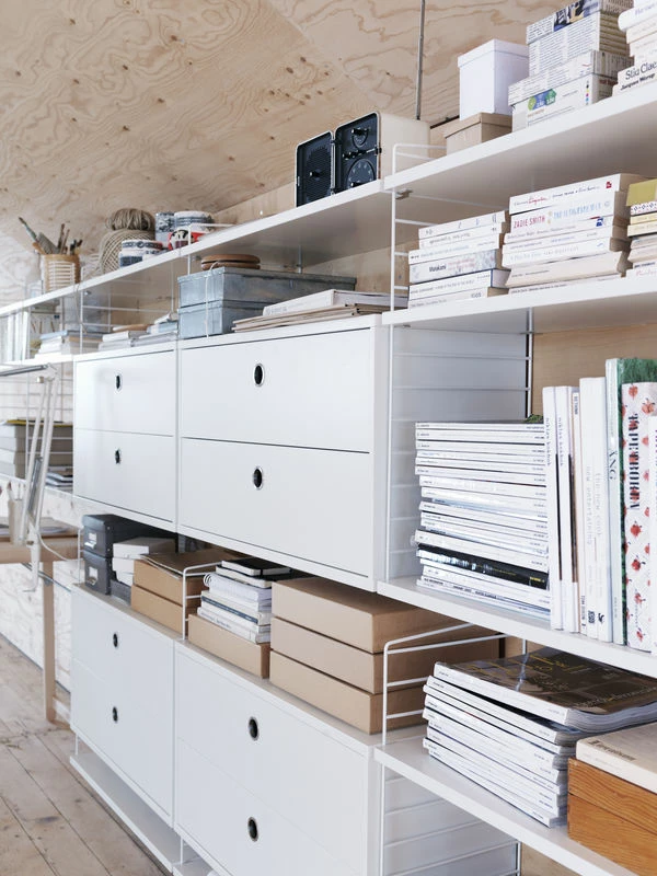 The string® system was designed in 1949. over 60 years it has evolved from being a ground-breaking concept to becoming one of the most loved pieces of classic scandinavian design. each component of the system is so well thought through that there is an almost infinite variety of combinations. thanks to the slim panels it's possible to create a shelf large enough for any number of books and objects that still looks light. the components are available in a range of colours and materials, yet the measurements are fixed and have never been altered. that's why a string® shelf can always be rebuilt, reinvented and transformed.