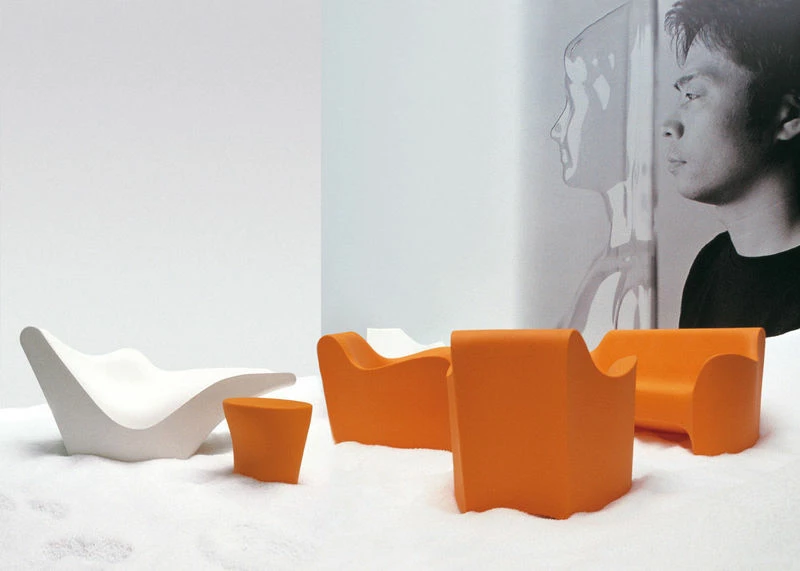 Small table which accompanies the line by sitted Tokyo Pop drawn by very talented Tokujin Yoshioka (settee, armchair, lounge chair). A remarkable work on the matter and the development of the forms with an innovative and unexpected expressive force.