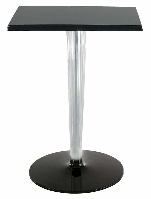 TopTop, Round or square table. The Top Top table line is a Philippe Starck’s creation. It is distinguished by its aternation of opaque and transparent surfaces and by an enormous choice of dimensions, shapes and materials. This version is to perfect to accompany the Starck’s chairs Dr Yes. The table is available with a melaminated black or white top and a base with the same colour. the leg can be either a round and smooth or a square and faceted transparent section with a metal core. This model is resistant and can be used outside.