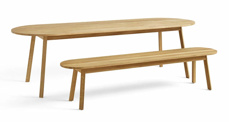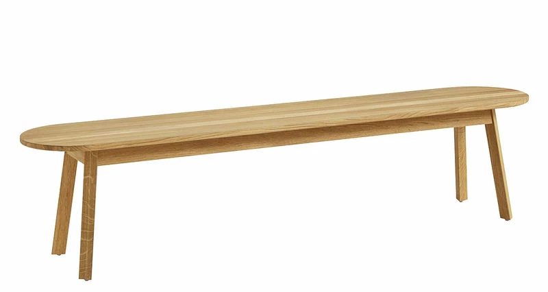 Motivated by the desire to create more space around a table, Simon Jones designed the Triangle range made up of a table and a matching bench. The bench has rounded ends, therefore creating a friendly frame: this shape allows it to add additional seats while staying compact. This bench with a simple and clean style is made of solid oak with an elegant oiled finish. Its triangular legs give an impression of lightness which will blend into a dining room equally as well as an office. For surfaces that are not flat, you can adjust the height of the bench thanks to the screws built into the legs.