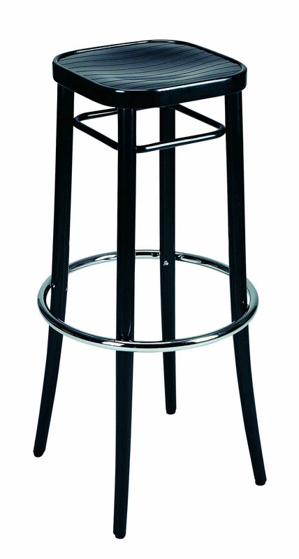 Designed in 1908, the "Vienna 144" stool is a real icon of Viennese industrial design. A star item in cafés and bistros in the early 1900s, it has lost nothing of its retro charm and authenticity. Its curved silhouette is rooted in all our memories. Robust and elegant, the Vienna 144 stool has bent beechwood legs reinforced at the top with a lacquered metal ring. The curved seat is created from beechwood plywood. It is decorated with striped patterns. The footrest is in the shape of a chromed metal ring, encircling the feet: its minimalist frame traces a light and attractive, enveloping apron. The Vienna 144 stool is a light and timeless item of furniture with exquisite design details. A solid item that can be passed down from generation to generation. Comes in a multitude of colours: please ask us.