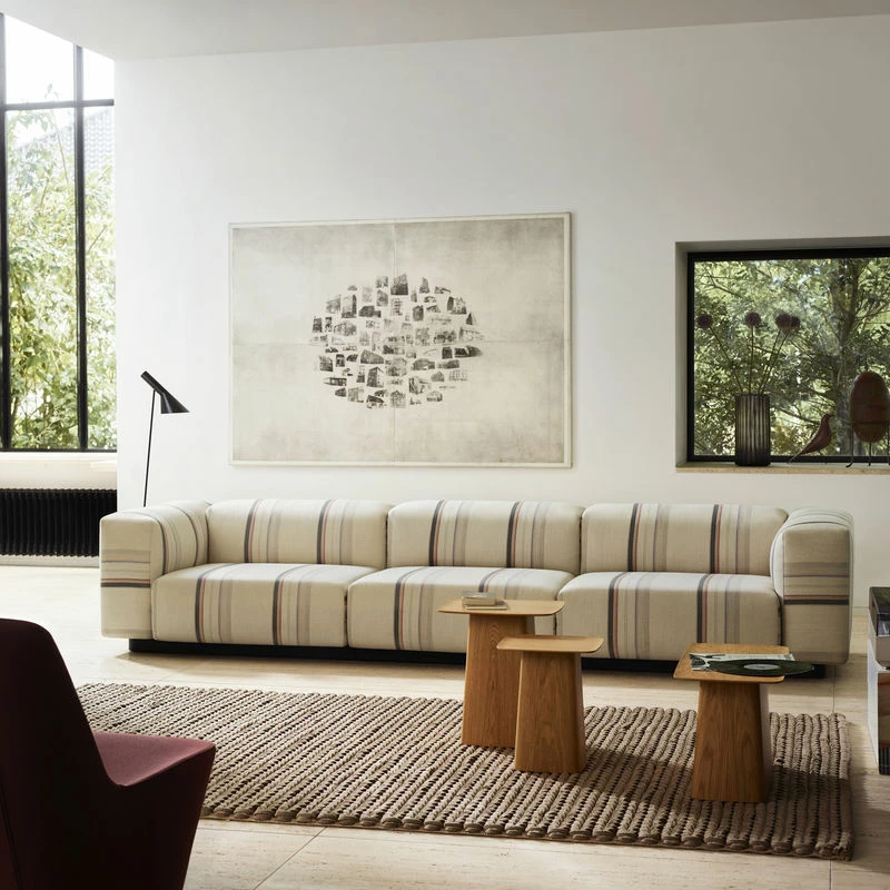 Through their design, the Wooden Side Tables resemble the Metal Side Tables designed in 2004 by Ronan and Erwan Bouroulle. Like these latest pieces, the little wooden side tables gain their charm from the contrast between the fine tabletops and the high-volume legs shaped like a base. Nevertheless, the moulded plywood tabletops are slightly curved at the edges, giving them an elegant, almost Japanese-style look. The Wooden Side Tables are available in three sizes and form, with the Metal Side Tables, a family of side tables offering a huge variety of combinations and options for use. With their wooden veneer, they add a natural and welcoming tone to the group and, thanks to their plywood structure, they’re lightweight and easy to move around.