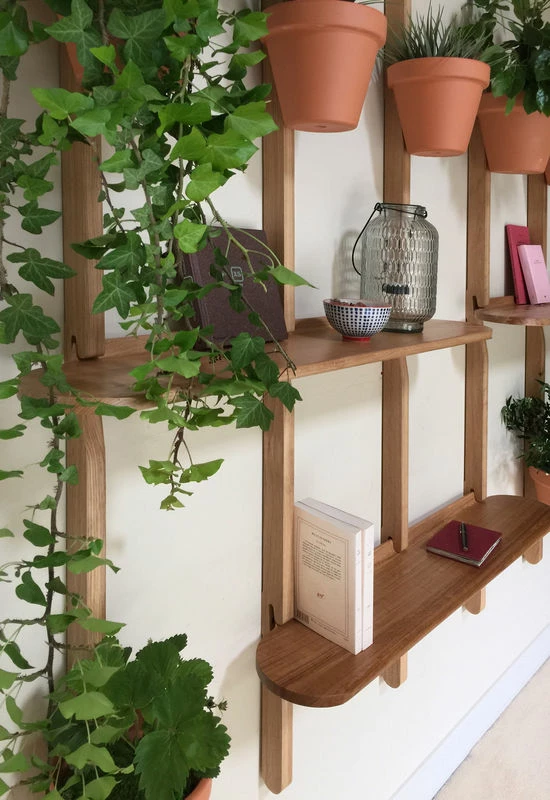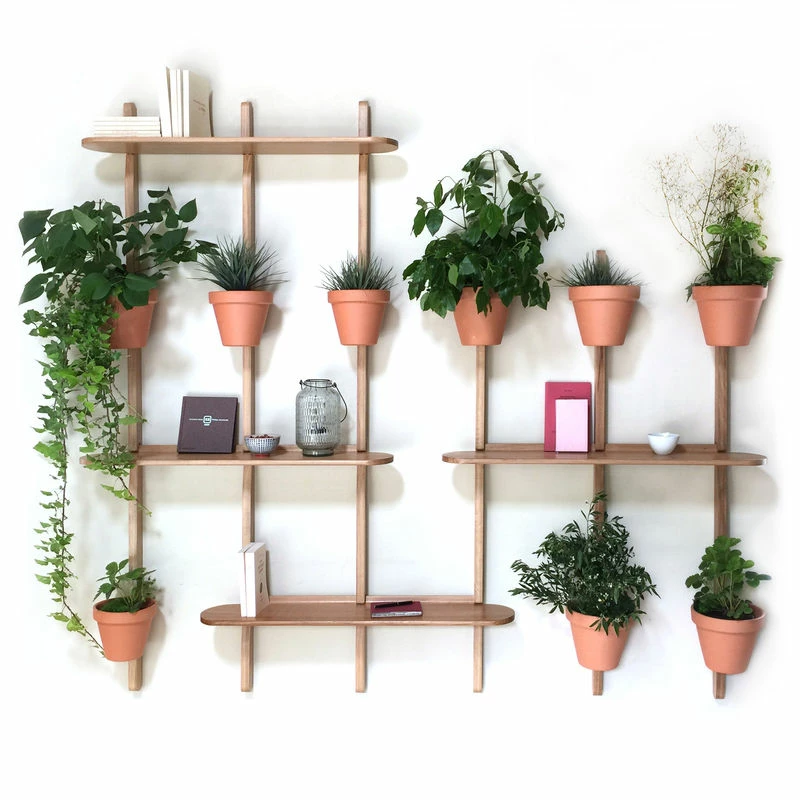 Create a wonderful plant scene on your walls… With XPOT, the plants are taking back control over our interiors without actually taking the furniture's place! This system of adjustable oak shelves is made of wooden supports which are attached to the wall to welcome shelves and flowerpots (flowerpots not included). The shelves and pots slide simply into the notches of the supports, without tools. They are not attached, you can remove them and move them easily. The free layout of different elements (supports, shelves and pots) allows for a variety of set-ups. Depending on the number of supports, their size, their colour and the placement of the pots and shelves, you get a unique plant composition! This arrangement includes four shelves with rounded edges and 6 wall fixations: three wall fixations H 200 cm (with 4 notches) and three wall fixations H 150 cm (with 3 notches). The wall fixations can accommodate the 4 shelves included and up to 9 flowerpots (pots not included). PLEASE NOTE! Pots and plants not included. This wall fixation is suitable for all gardening pots (= with rim), terracotta or enamel, with a diameter between 12 and 24 cm. These pots are sold in all garden centres. They are the basics always in stock.