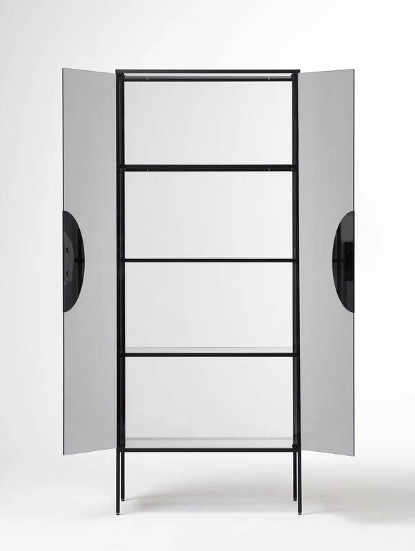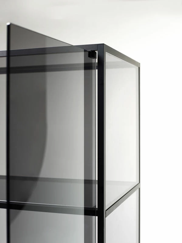 This elegant storage unit will add character to your interior! With a black anodised aluminium structure, Yang also has a tinted glass showcase. It reveals your object placed inside, on the four shelves. Semi-circular nickel handles complete its distinguished style. Displayed in this refined showcase, your different pieces (tableware, vases, figurines, cosmetics, etc) will be perfectly showcased. With its graceful outline and sculptural style, Yang will be at home in any of your rooms…